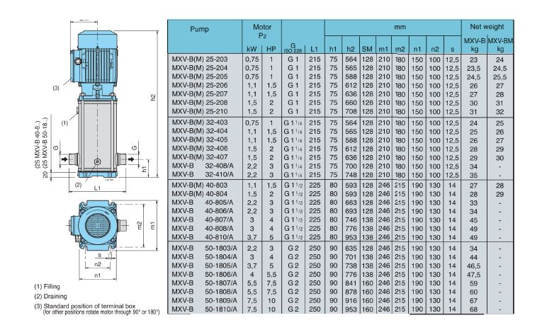 MXV-B – DİKEY TİP, PASLANMAZ ÇELİK, KADEMELİ POMPA